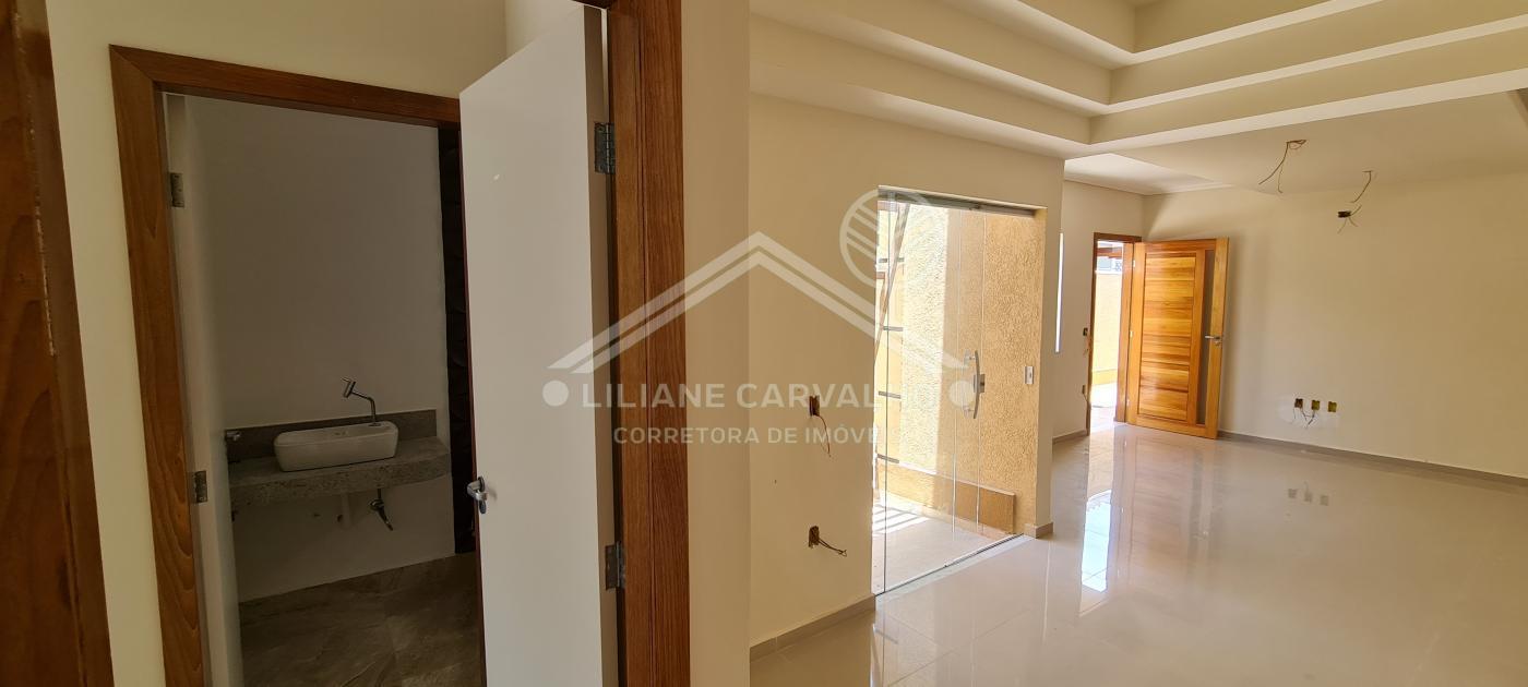 Casa linear nova estilo contemporâneo, com 3 quartos, sendo 1 suíte, sala ampla com pé direito alto, rebaixamento em gesso e l...