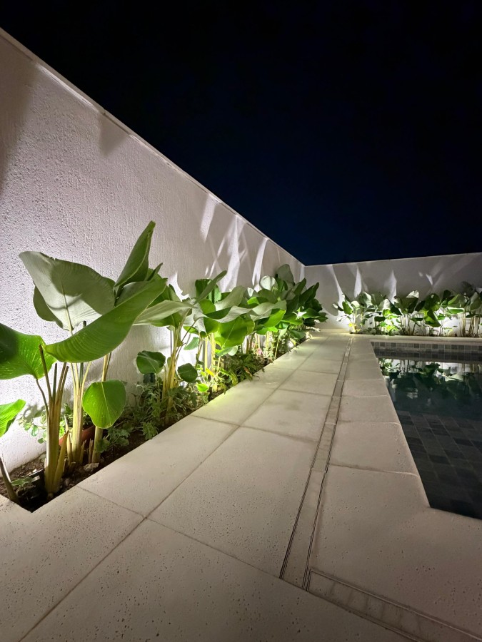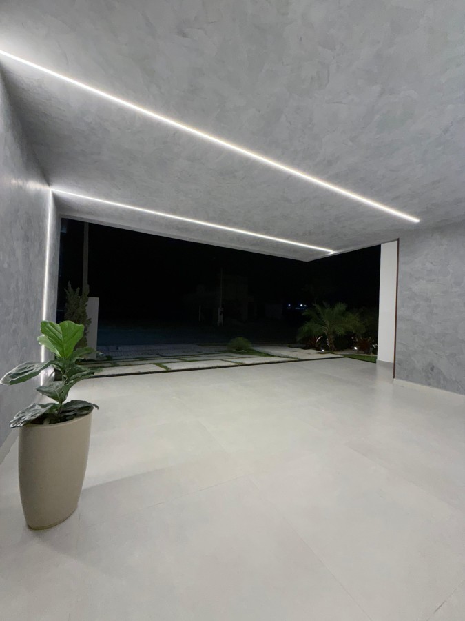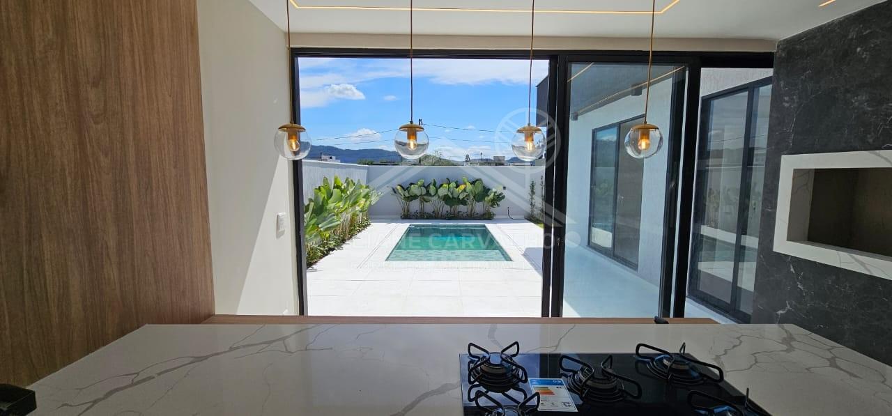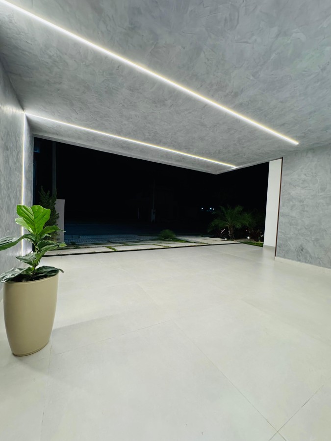 Na área externa, o imóvel ainda oferece lavabo, área de serviço e uma piscina de alvenaria que proporciona lazer e bem-estar em perfeita harmonia com o design contemporâneo da casa.