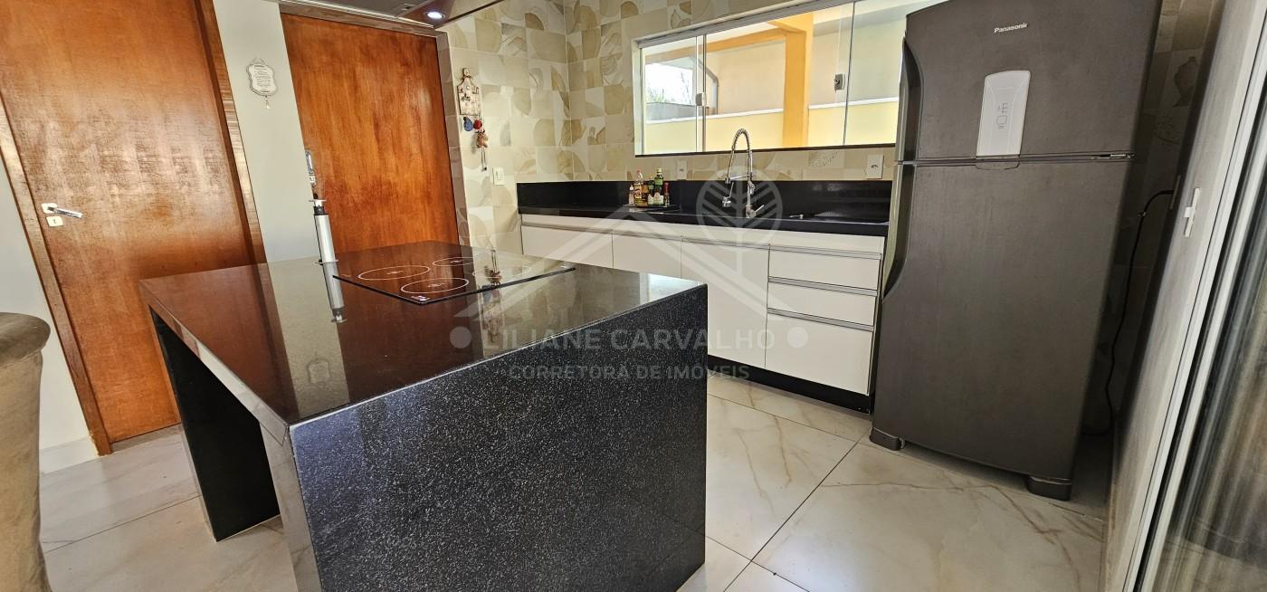 A cozinha moderna, com ilha central e cooktop, já equipada e mobiliada, foi pensada para quem gosta de receber e preparar boas refeições.