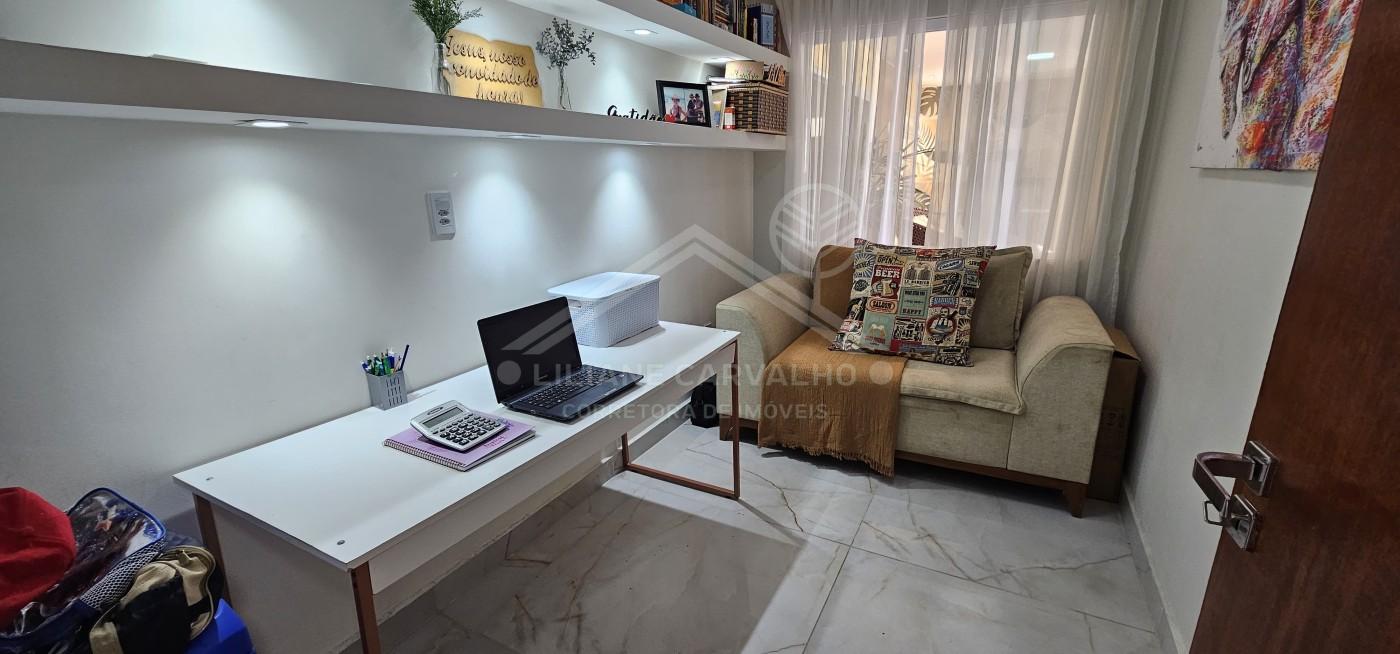 São três quartos, incluindo uma suíte com closet, além de um escritório reservado, ideal para quem trabalha em home office.