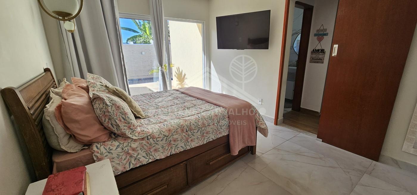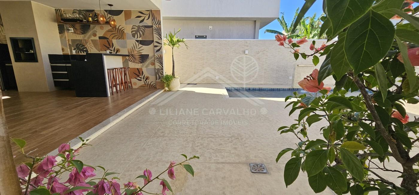 Na área externa, a casa oferece um verdadeiro refúgio com espaço gourmet completo com churrasqueira, piscina com cascata e amplo quintal, perfeito para momentos inesquecíveis em família ou entre amigos.