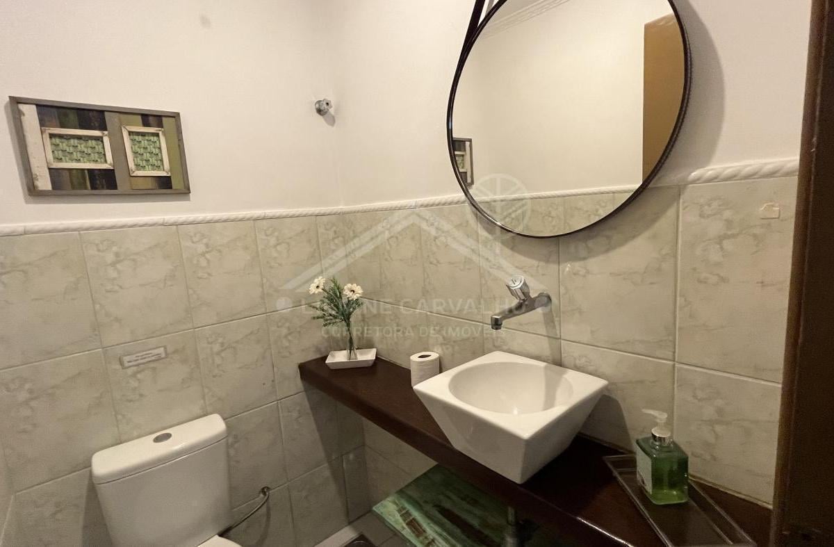 A casa possui 3 salas, sendo duas delas equipadas com TVs de tela plana, perfeitas para momentos de entretenimento em família. A cozinha é completa e a área de serviço oferece toda a praticidade necessária. São 3 banheiros e 1 lavabo, garantindo o conforto de todos os moradores.