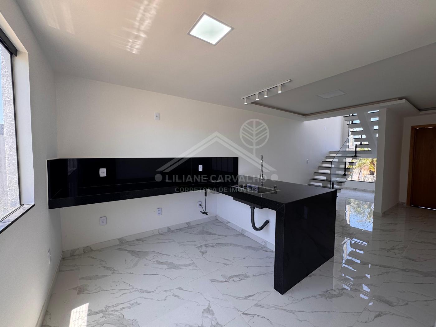 Piso térreo: sala de estar, jantar e cozinha em conceito aberto, com uma linda península com balcão de café da manhã, lavabo com jardim de inverno, lavanderia, garagem para 2 carros, sendo uma vaga coberta,