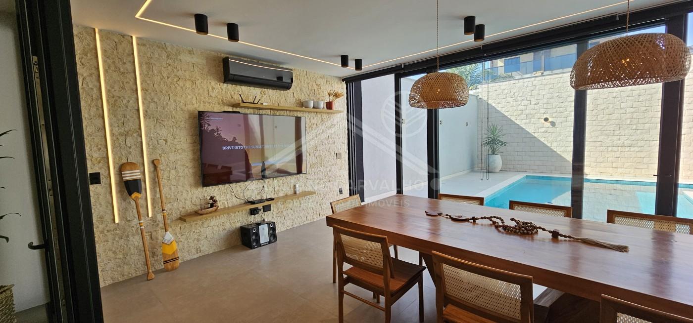 No lazer, o imóvel oferece um spa com hidromassagem, lareira, solarium e piscina integrada ao espaço gourmet com churrasqueira e chuveirão. O terraço envidraçado descortina uma paisagem serena, enquanto o jardim de inverno e o quintal permitem um contato constante com a natureza. Conta ainda com sistema de energia solar, ar-condicionado em todos os cômodos, depósito funcional, mezanino, escritório e uma cozinha com despensa e copa. A localização privilegia a conveniência: bares, restaurantes, supermercado, shopping center, escola e farmácia estão a poucos minutos.