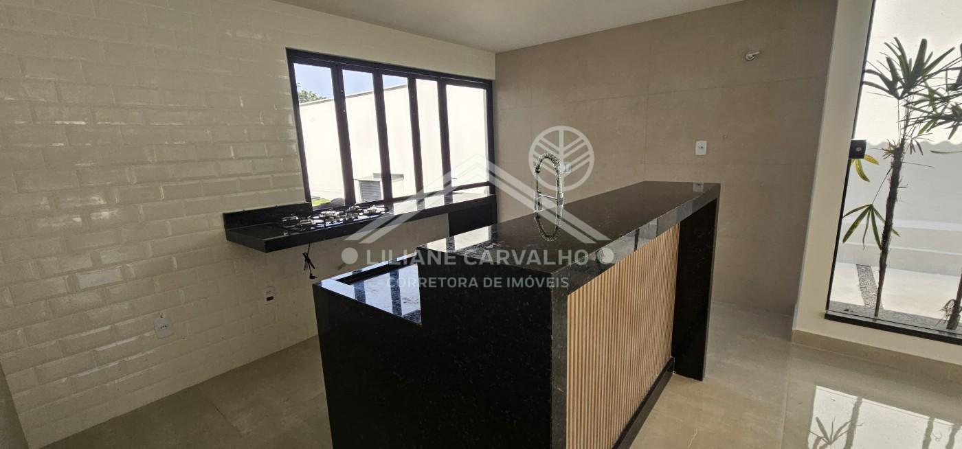 Pense em receber amigos no espaço gourmet equipado com bancada em granito e lavabo exclusivo, enquanto a área de churrasqueira se conecta à piscina com cascata e ao chuveirão externo, oferecendo um verdadeiro refúgio de lazer no quintal. A cozinha americana com bancada em granito, cooktop e ilha central complementa a cozinha montada. Ao lado, a área de serviço fechada que garante praticidade sem comprometer o design. A entrada paisagística, as duas vagas de garagem e as caixas d’água de 1.000 L cada demonstram o cuidado com cada detalhe do projeto.
