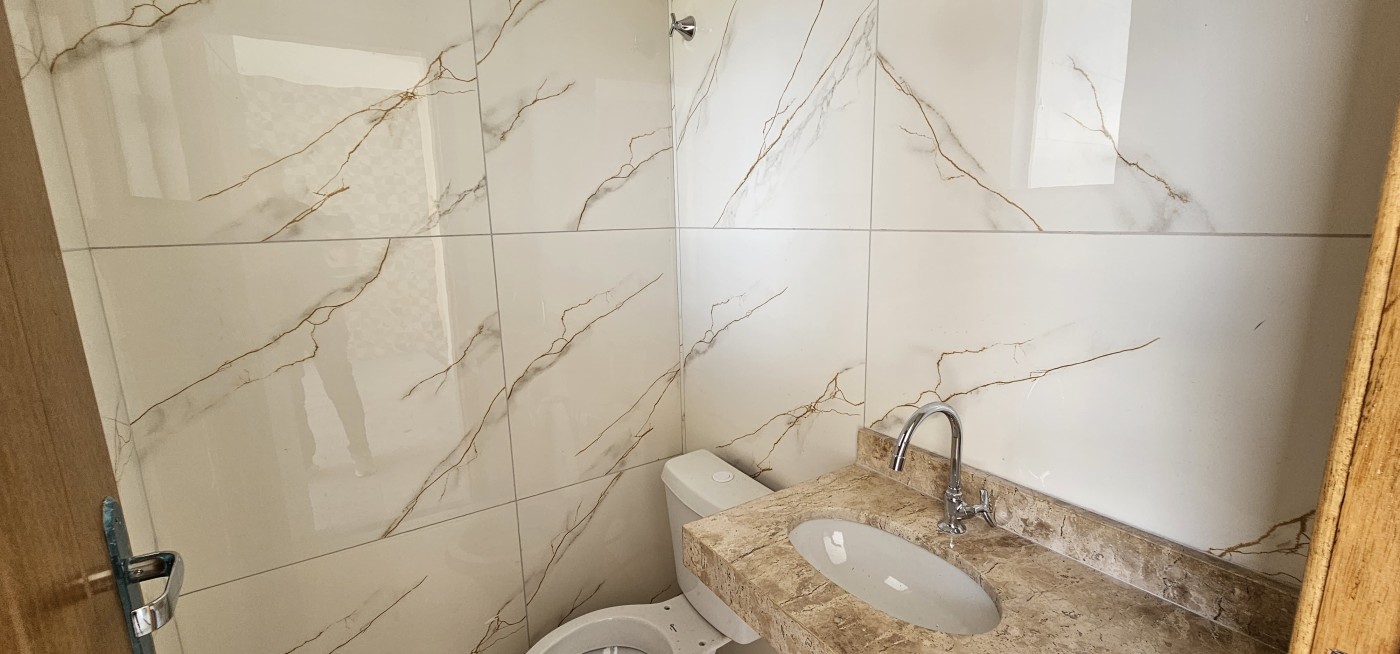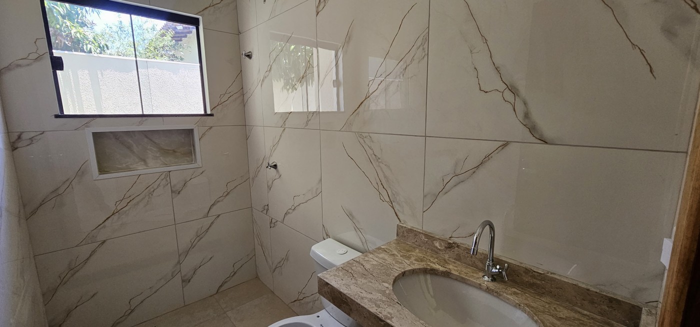 Casa moderna com 2 quartos, sendo 1 suite, 3 banheiros, sala e cozinha ampla com balcão de mármore. Tudo com ótimo acabamento e d...